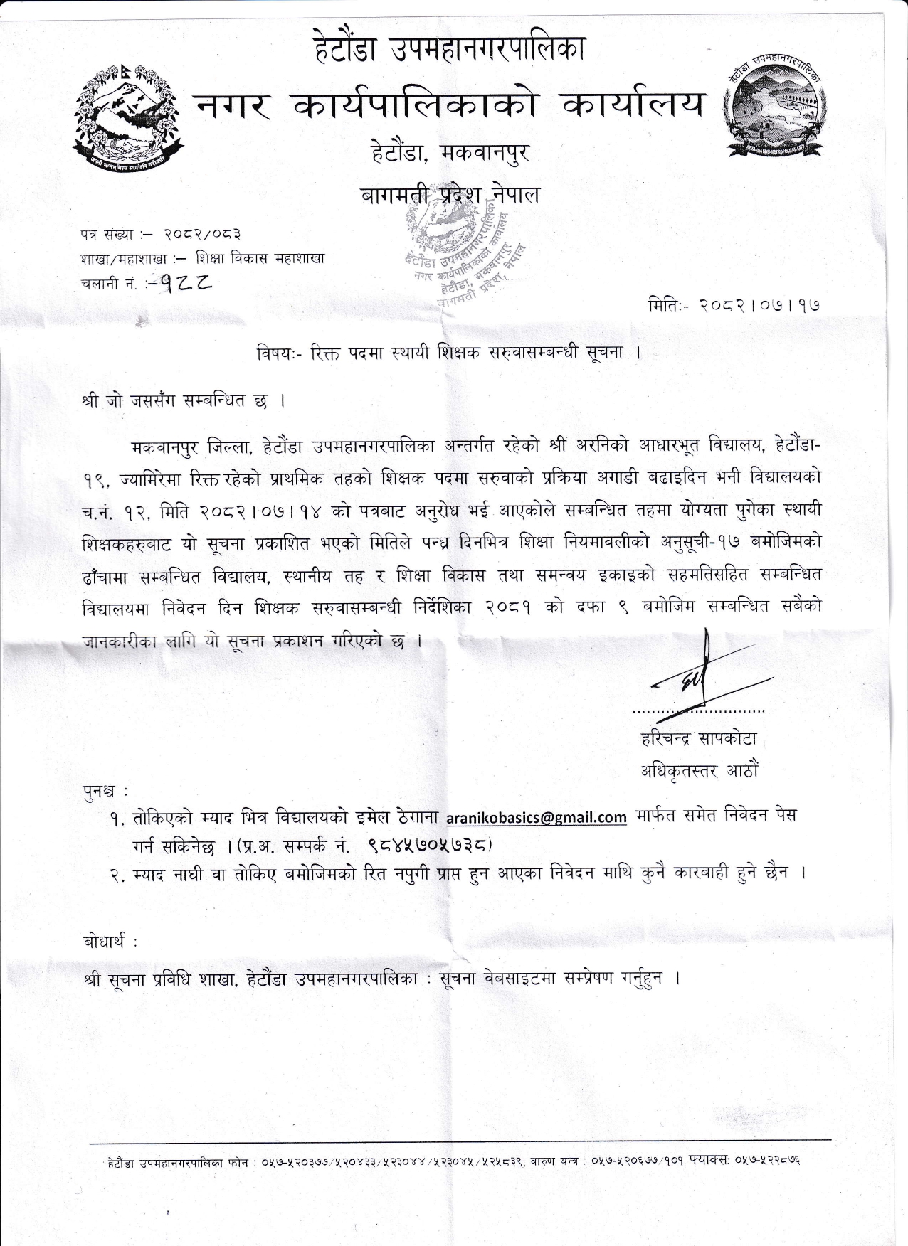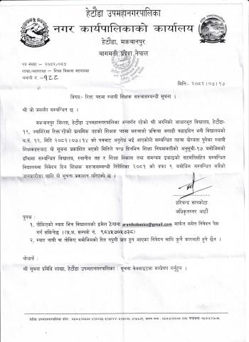 रिक्त पदमा स्थायी शिक्षक सरुवासम्बन्धी सूचना !!