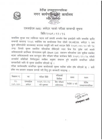 MIS Operator पदको परीक्षा सम्बन्धी सूचना