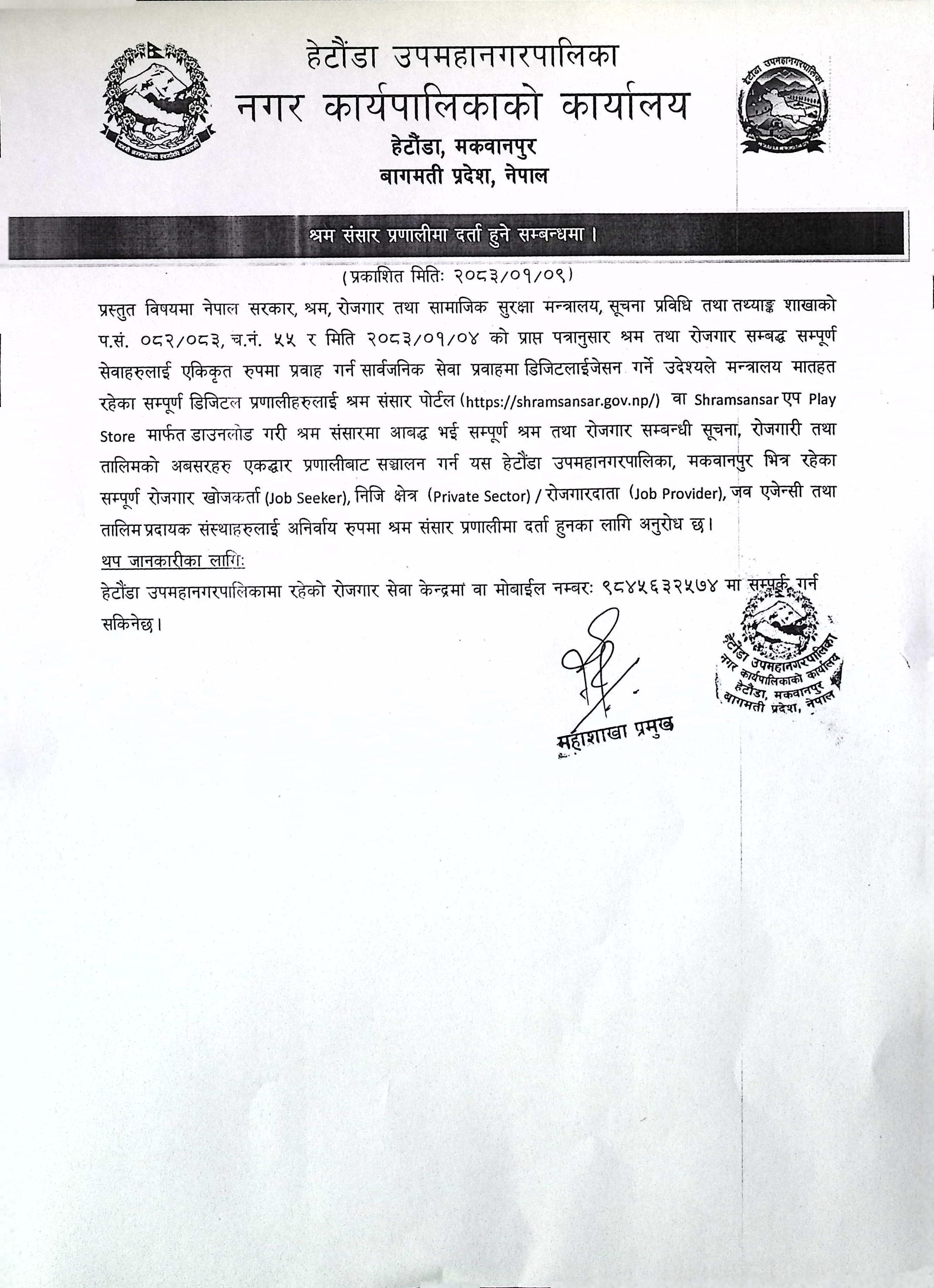 श्रम संसार प्रणालीमा दर्ता हुने सम्बन्धी सूचना !