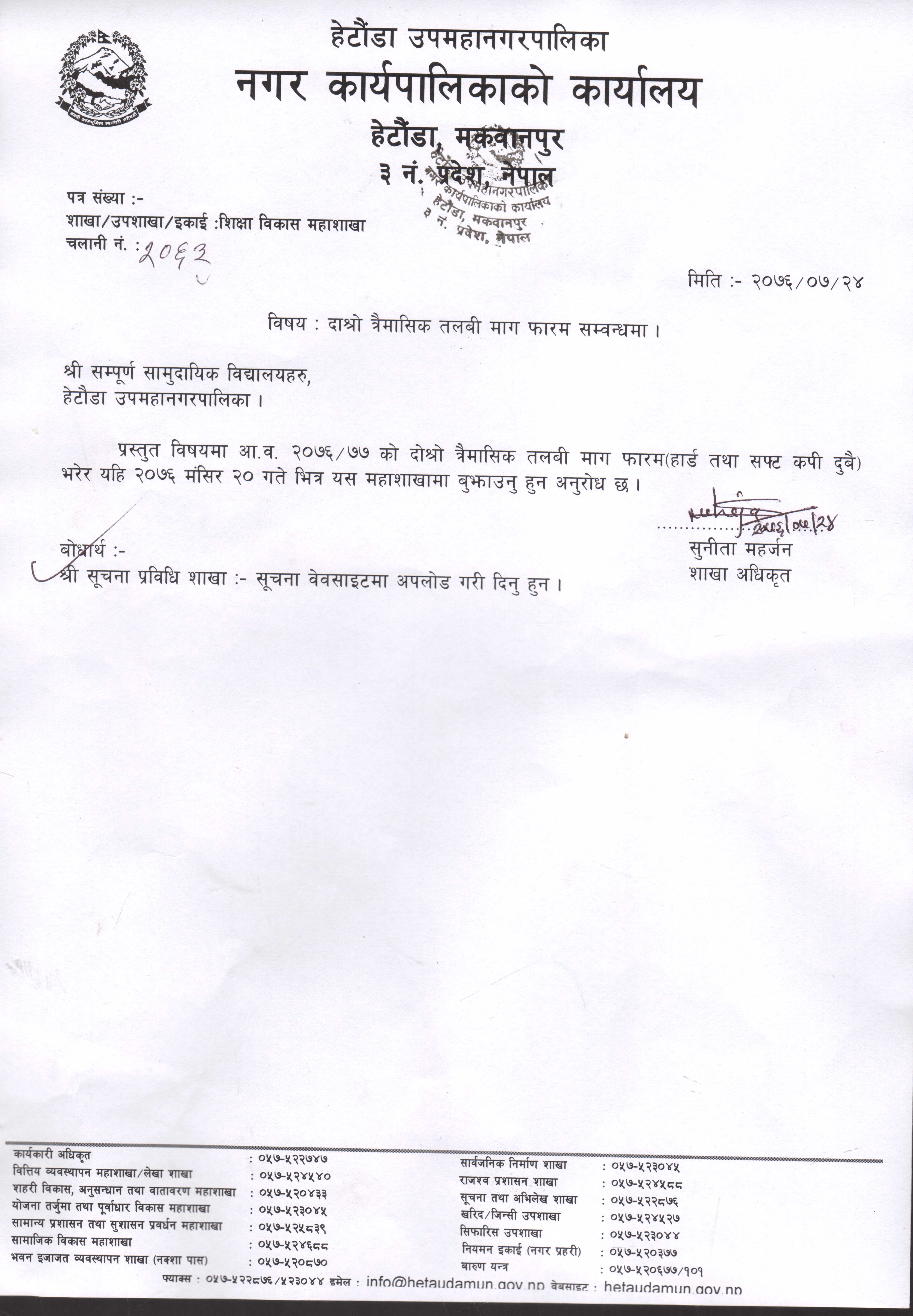 दोश्रो चौमासिक तलबि मागफारम सम्बन्धमा