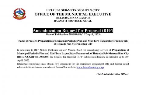 Amendment on Request for Proposal of Municipal Periodic Plan and Mid-Term Expenditure Framework of Hetauda Sub-metropolitan City Office